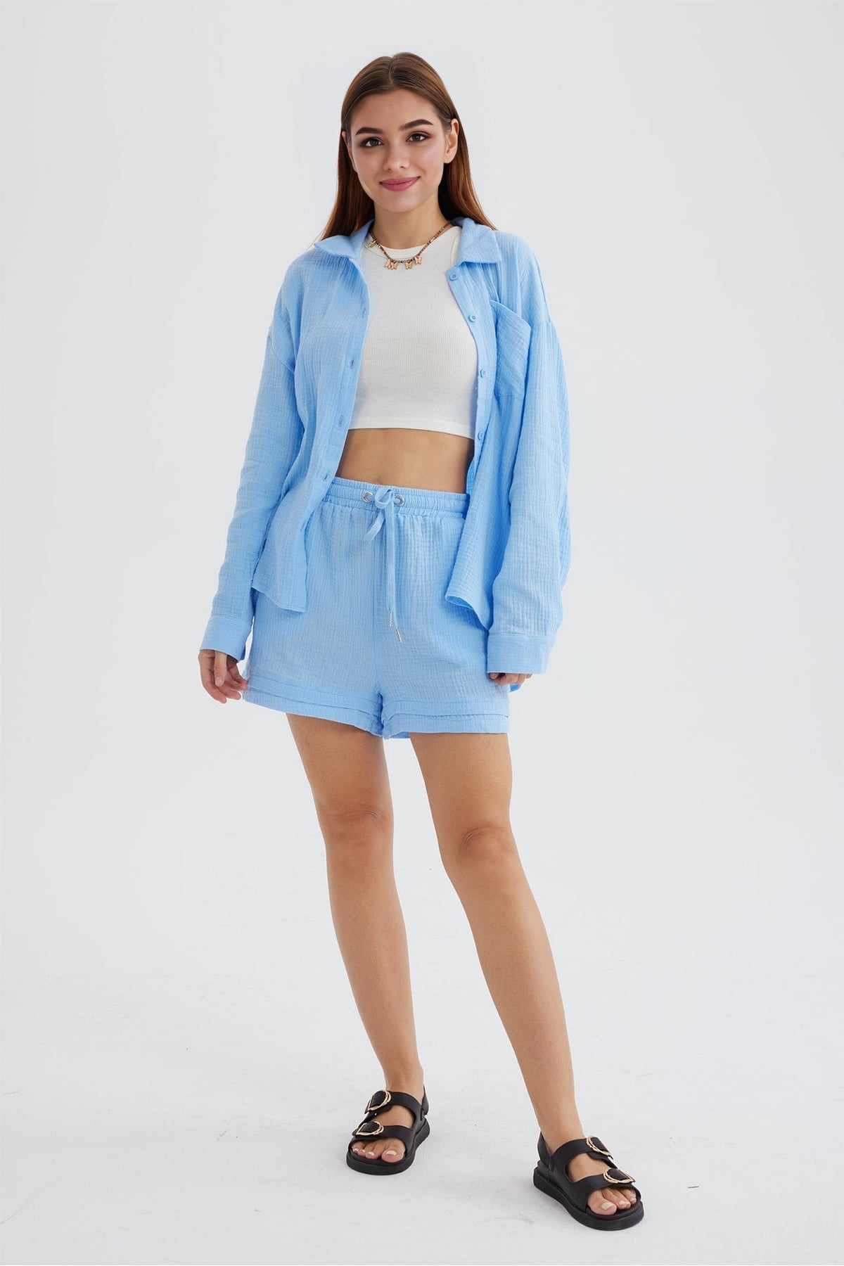• Abgestimmter Stil: Ein perfekt abgestimmtes Shirt und Shorts für einen stilvollen, wohlüberlegten Look, der mühelos schick wirkt.